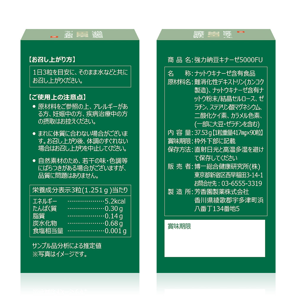 デキストリン(国内製造)、ナットウキナーゼ/ゼラチン、結晶セルロース、ステアリン酸マグネシウム、微粒二酸化ケイ素、カラメル色素、(一部に大豆・ゼラチンを含む)